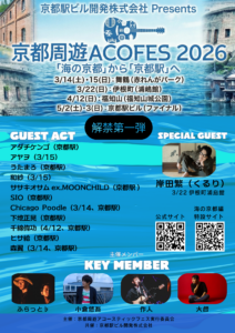 大変お待たせいたしました!本日、2月13日(金)18:00に、「京都周遊アコースティックフェス2026」の開催および第1弾出演アーティストの情報を正式に解禁いたします。 ▼第1弾出演アーティスト(50音順・敬称略)Spe […]